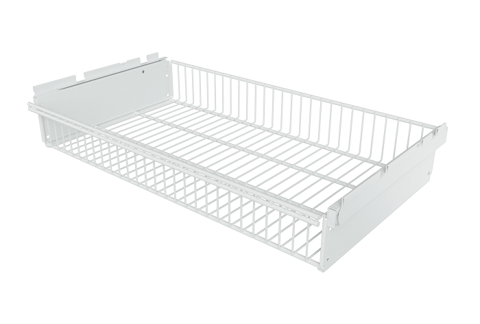 Корзина выдвижная Титан GS предназначена для установки на гардеробную систему. Изготовлена из проволоки, такой же как и сетчатые полки Титан GS. Учитывая крупноячеистую структуру, выдвижные корзины являются отличным вариантом для хранения одежды, поскольку обеспечивается отличная вентиляция вещей. Корзина выдерживает до 35 кг при ее равномерном распределении. Устанавливается на кронштейны полок Титан GS (в комплект не входят). Покрытие: порошково-полимерное, гипоаллергенное и устойчивое к механическому воздействию. Цвет: белый