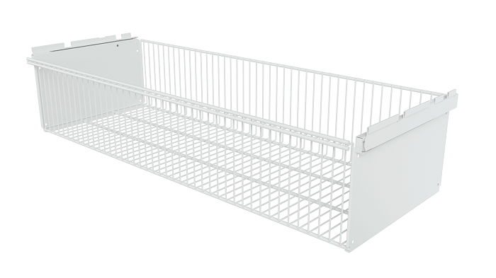 Корзина выдвижная Титан GS предназначена для установки на гардеробную систему. Изготовлена из проволоки, такой же как и сетчатые полки Титан GS. Учитывая крупноячеистую структуру, выдвижные корзины являются отличным вариантом для хранения одежды, поскольку обеспечивается отличная вентиляция вещей. Корзина выдерживает до 35 кг при ее равномерном распределении. Устанавливается на кронштейны полок Титан GS (в комплект не входят). Покрытие: порошково-полимерное, гипоаллергенное и устойчивое к механическому воздействию. Цвет: белый Ral 9016.