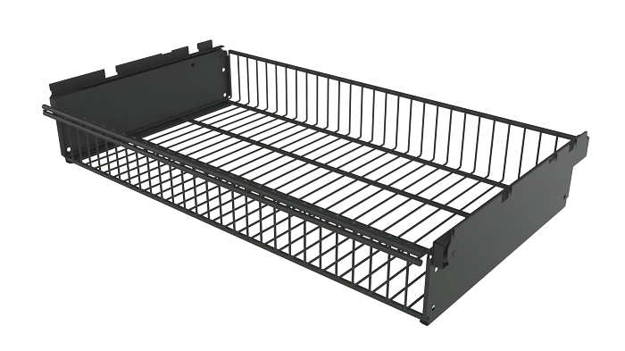 Корзина выдвижная Титан GS предназначена для установки на гардеробную систему. Изготовлена из проволоки, такой же как и сетчатые полки Титан GS. Учитывая крупноячеистую структуру, выдвижные корзины являются отличным вариантом для хранения одежды, поскольку обеспечивается отличная вентиляция вещей. Корзина выдерживает до 35 кг при ее равномерном распределении. Устанавливается на кронштейны полок Титан GS 435 (в комплект не входят). Покрытие: порошково-полимерное, гипоаллергенное и устойчивое к механическому воздействию. Цвет: черный