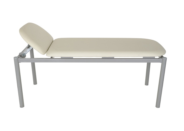 Медицинская кушетка МД КС-02 от производителя ПРОМЕТ представляет собой сборно-разборную конструкцию, предназначенную для ожидания пациентов в очереди ко врачу, также она используется для отдыха в помещениях стационаров больниц и поликлиник. Каркас кушетки МД КС-02 изготовлен из стальной трубы квадратного сечения 50х25х2 миллиметра, сидение изготовлено из ДСП толщиной 16 миллиметров с настилом из поролона толщиной 40 мм. Для обивки используется искусственная специальная полумягкая кожа светлого оттенка. Обивка устойчива к истиранию и воздействию дезинфицирующих средств. Головная секция регулируется с помощью ступенчатого механизма Rostomat. Максимальная равномерно распределенная нагрузка на лежак МД КС составляет 150 кг. Цвет каркаса - серый Ral 9007, цвет обивки - слоновая кость. Дополнительная опция: держатель для одноразовых рулонных простыней и полотенец КММ.
