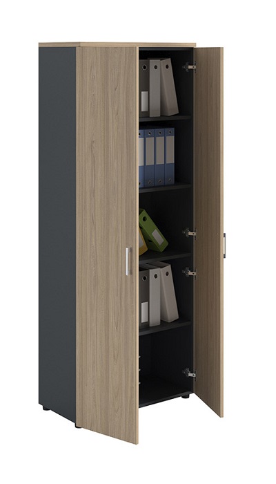 Шкаф NW 2080 закрытый вяз натуральный/антрацит предназначен для оснащения и организации рабочего места в кабинетах, офисах. Вместимость шкафа: не менее 45 папок Корона (75 мм)