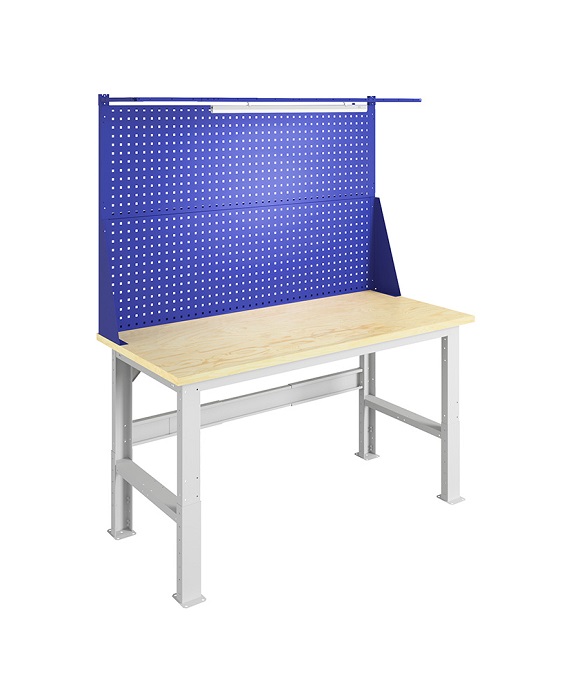 Стол производственный №607 предназначен для организации рабочего места в мастерских, автосервисах, на промышленных предприятиях. Изготовлены из высококачественной стали и отличаются усиленной конструкцией. Стол выдерживает нагрузку 750 кг. В комплект стола входит: Столешница W-160 мм 1 шт, Опора регулируемая WF-2  2 шт, Планка WSh и 2 косынки 1 шт, усилитель верстака 160 1шт, перфорированный экран WS 2 шт, комплект косынок на экран WS, комплект освещение 1шт. Столешница выполнена из фанеры толщиной 30 мм. Опоры возможно регулировать по высоте от 870 до 1120 мм с шагом 50 мм. Предусмотрена площадка для монтажа комплекта колес WS к опоре. Дополнительно на стол можно установить: подвесную тумбу WD-0; заменить накладку (оцинкованный металл толщиной 1,5 мм или окрашенный металл 3 мм); аксессуары на перфорированный экран; светодиодное освещение и аксессуары для инструментов. Стол производственный поставляется в разобранном виде. Цвет: корпус - серый Ral 7038